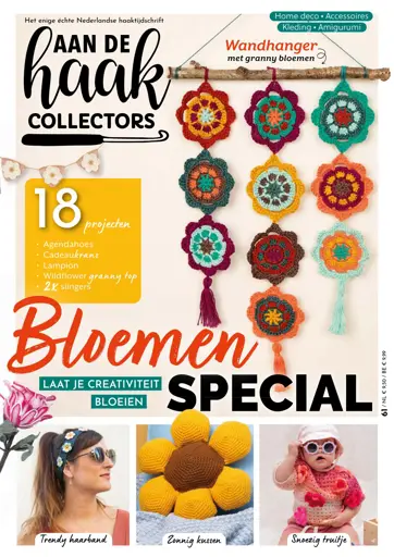 Aan de Haak 61 Collectors Editie Laat je haaknaald bloeien met de nieuwste editie van Aan de Haak! Dit keer staat het nummer volledig in het teken van bloemen – van anjers en zonnebloemen tot de majestueuze Protea King. Ontdek haakpatronen voor prachtige bloemen en verwerk ze in de mooiste projecten. Haak een snoezig bloementruitje voor een kind, een elegante bloemenstola of een speelse granny wildflower top. Fleur je interieur op met een bloemrijk kussen of een granny flower wandhanger. Of ga aan de slag met vrolijke bloemenslingers, een zomerse haarband of de sfeervolle lampion. Deze Collectors Edition bevat niet alleen de beste projecten uit HobbyHandig en Aan de Haak, maar dit keer ook extra veel gloednieuwe artikelen. Met inspirerende patronen, handige tips en creatieve ideeën is deze editie een must-have voor iedere haakliefhebber!