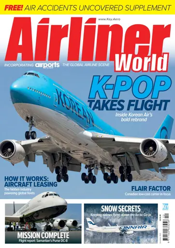 December 2025 Cover star of the December 2025 edition of Airliner World, incorporating Airports of the World, is Korean Air, which unveiled a new corporate identity after 41 years. Assistant Editor Robert Veitch travelled to Seoul to find out more about the carrier’s regeneration and its merger with Asiana Airlines. Back by popular demand is our Air Accidents Uncovered special, an exclusive supplement that takes an in-depth look at three air accidents that changed the aviation industry. Editor Thomas Haynes recounts the story of British Airways Flight 38, a routine landing at London/Heathrow that turned into a near disaster. Stephen Skinner looks at the tragic story of Air France Flight 269Q, the world’s first fatal accident involving the Airbus A320, while Lee Cross recounts the story of Pan Am Flight 103, which exploded over the small Scottish town of Lockerbie, killing all 259 people onboard and 11 on the ground. Today, almost 40 years later, the investigation rumbles on. For our lovers of classic airliners, Bernd Sturm hops onboard the last remaining US-registered Douglas DC-8, owned and operated by Samaritan’s Purse, as it readies for its retirement at the end of this year. Fans of Airports of the World are in for a treat, with a variety of articles this month, including a visit by Dirk Grothe to Mactan Cebu International Airport, which serves the Philippines’ second-largest metropolitan area. Andrik Garcia, meanwhile, offers a selection of photographic highlights from Mexico City International Airport Benito Juárez. Robert Veitch dons his snow boots and heads to Helsinki and Ivalo to learn more about Finavia’s world-leading SnowHow winter programme.