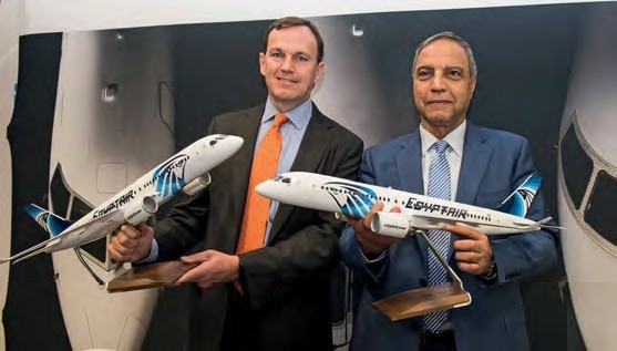 EGYPTAIR SIGNED deals for three new types at the show as part of a fleet recapitalisation programme. The standout agreement was a letter of intent (LOI) with Bombardier for 24 CS300s, while it also teed up lease deals with AerCap for six Boeing 787-9 Dreamliners and 15 Airbus A320neos. The Bombardier LOI, which is expected to be firmed by January, consists of 12 aircraft and a dozen purchase rights. If all the purchase rights are exercised, the deal is valued at nearly $2.2bn. Safwat Musallam, Chairman and CEO of EgyptAir Holding Company, said: “We undertook a thorough evaluation process of our fleet and realised that the CS300 would fit perfectly into our business plans and growth strategy.”
