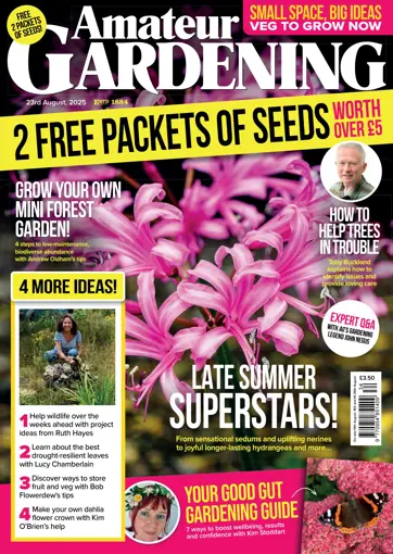 23-Aug-25 Upbeat, accessible and expert-led ideas from the friendly team at Amateur Gardening magazine to help save time, money, and boost results in the process. From uplifting nerines, sensational sedums and joyful hydrangeas to the best drought resilient leaves, forest gardening, gut health boosting edibles, wildlife and tree care projects and so much more besides. This issue, our merry band of brilliant AG expert contributors include Ruth Hayes, Bob Flowerdew,, Anne Swithinbank, Kim Stoddart, Lucy Chamberlain, Mandy Bradshaw, Michael Perry, Rosie Irving, John Negus, Mike Palmer, Kim O’Brien, Graham Clarke,Chris Collins, Liz Zorab and Toby Buckland!