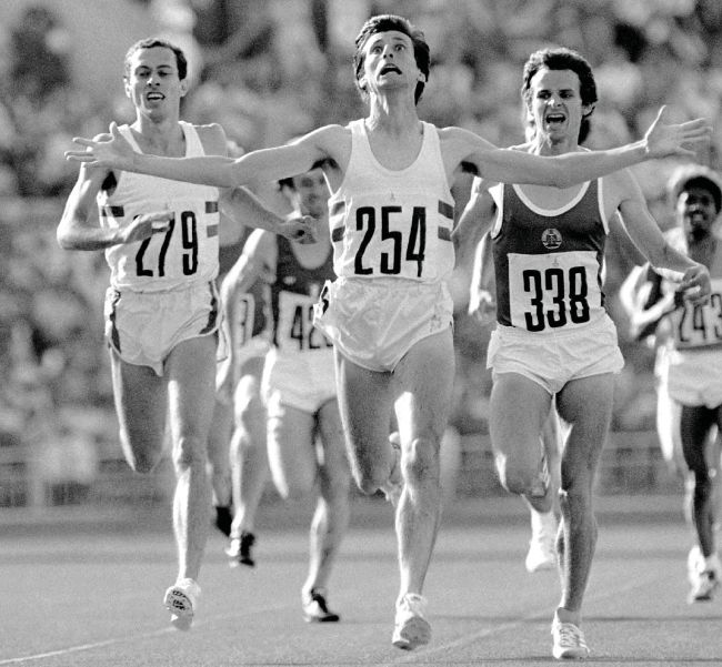 The release of emotion is clear to see as Seb Coe claims 1500m gold at the Moscow Olympics