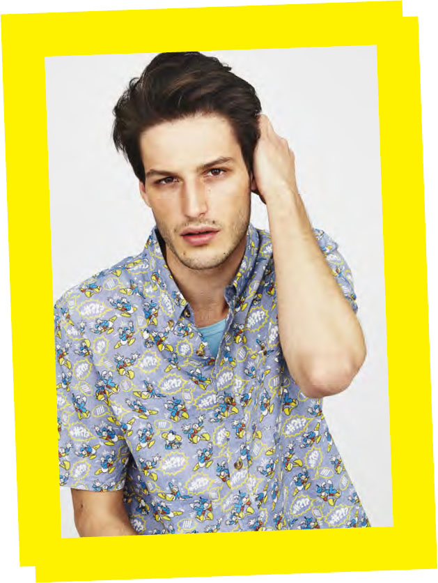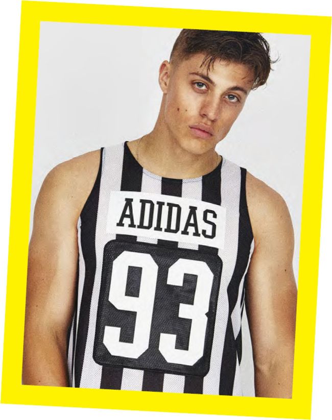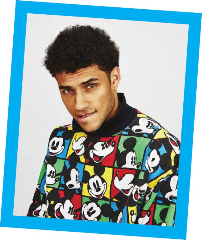 Levis wears shirt by Vans Disney, £55, Jordan wears sweatshirt at Beyond Retro, £22, Isaac wears t-shirt, model’s own, Max wears vest by Adidas, £38