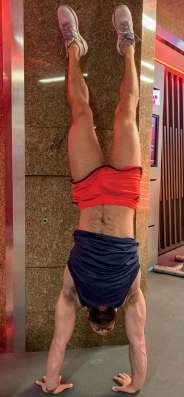 ► TO START, find a wall to practise against. Kick up into a handstand, holding for up to 30 seconds, and then come back down.