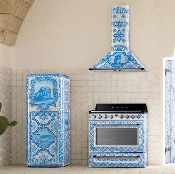 Italian fashion juggernauts Dolce & Gabbana want to make sure you are livin’ la dolce vita this summer, teaming up with appliance brand Smeg for a super cool and luxurious collection called Divina Cucina (Divine Kitchen). The drool-worthy set includes a Victoria range cooker, extractor hood and Smeg’s fabulous FAB28 fridge, all available in two diff erent colours. The first is inspired by Italy’s Maiolica ceramic pottery, depicting Mount Etna and scenes of mythology in shades of ocean blue and pearl white; the other boasts a fiery red-and-orange geometric pattern, vivid fruit illustrations and floral motifs. We’re getting serious Amalficoast vibes. Price on application.