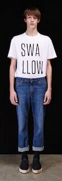 SINCE APPEARING IN ALEXANDER MCQUEEN’S SPRING SUMMER 1995 SHOW “THE BIRDS”, THE SWALLOW HAS GONE THROUGH VARIOUS REINCARNATIONS. OVER THE PAST FIVE YEARS, IT HAS SETTLED AS THE EMBLEM FOR MCQUEEN’S YOUNGER SIBLING BRAND, MCQ. THE SWALLOW HAS NOW EVOLVED WITHIN THE BRAND AND BEEN GIVEN ITS OWN COLLECTION, REDESIGNED BY ARTIST TOM TOSSEYN. AS WELL AS THE EXPECTED SILHOUETTE OF THE BIRD, THERE IS A MORE LITERAL TAKE, WITH “SWALLOW” WRITTEN BOLDY ACROSS HOODIES AND TEES. THE COLLECTION WILL BE AVAILABLE AT THE BEGINNING OF MAY.
