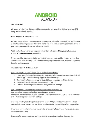 You'll receive 12 issues during a 1 year Android Advisor magazine subscription.
