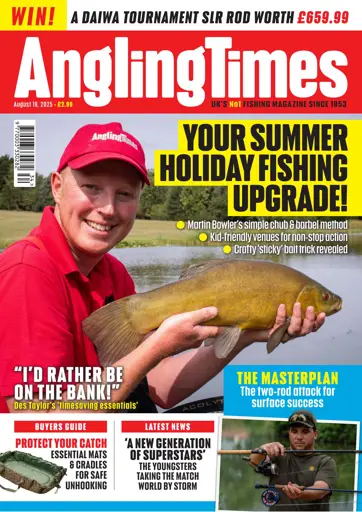 Dive into the latest issue of Angling Times, where Des Taylor reveals time-saving fishing essentials that’ll have you on the bank in no time! Upgrade your summer holiday fishing with expert tips, discover the next generation of rising match stars, and learn safe catch protection with essential mats. Plus, uncover Martin Bowler's chub and barbel tactics, kid-friendly venues, and a crafty bait trick. Don’t miss your chance to win a Daiwa Tournament SLR Rod worth £659.99!