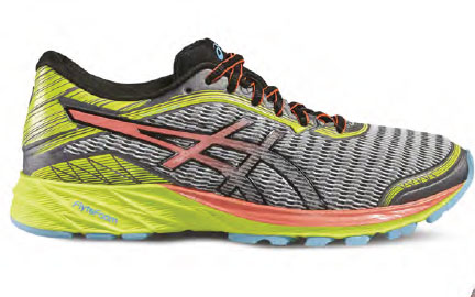Asics’ lightest-ever training shoe is designed to offer the high levels of cushioning found in the brand’s training shoes, but with the low weight of competition shoes. It does this thanks to the new FlyteFoam midsole material, which is around half the weight of the usual midsole materials, yet performs much better at absorbing impact. The last and fit of the shoe will be familiar to Asics users, the new midsole material doing the job precisely as intended; it feels very cushioned, but light and very responsive. The upper has a new engineered-mesh construction that provides a seamless and comfortable fit, with testers commenting on the soft, plush nature of the upper, in particular the heel cup, collar and tongue of the shoe which feel instantly welcoming. For neutral runners covering high mileage who like a lightweight shoe, this should be the perfect solution.