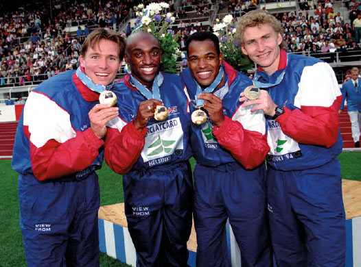 Brian Whittle (right): European 4x400m winner in Stuttgart in 1986 and, above, Helsinki in 1994