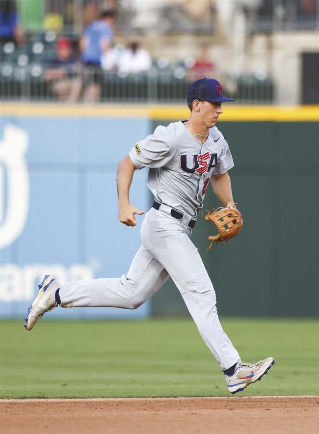USA Baseball’s Team Store-exclusive 2023 Panini USA Baseball Stars & Stripes 100-card Factory Set dropped the last day of May and is only available through the team store in Cary, N.C. or online from the organization.