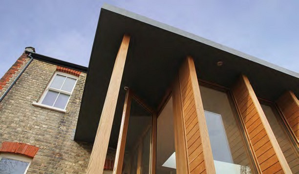 This oak and glass extension to a family home in north London is the work of Kin Architects. The designers cleverly rearranged the dwelling’s interiors and turned the sloping garden into a series of terraces. The new structure sits on a plinth made from reclaimed bricks, complementing the home.