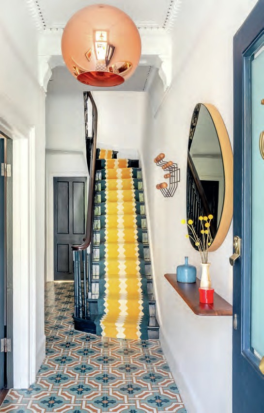 Above: A colourful runner can add personality to a renovated staircase.Handwoven wool Amulet Runner, in Safari yellow, from £385 per metre, Sophie Cooney