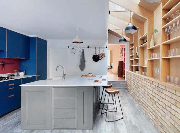 Working with a limited budget, Amos Goldreich Architecture transformed this Victorian terraced house by building a side extension and refurbishing the interiors. In the kitchen, costeffective Ikea units with plywood fronts complement the bespoke central island to establish a contemporary space with plenty of design panache
