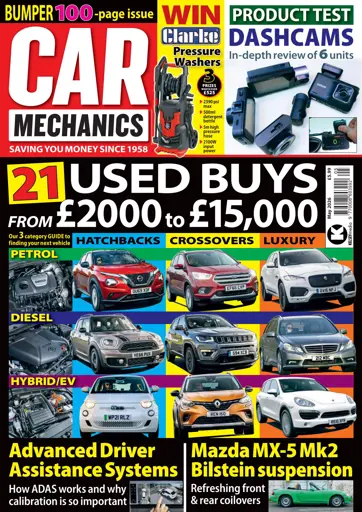 A bumper issue containing a Used Buys Supplement – 21 cars that have been manufactured with either petrol, diesel, or hybrid/EV power-plants. Plus: an 11-page ‘Instant Expert’ article on ADAS; fitting new uprated discs and pads to our Project Ford Focus ST170; refreshing the suspension with new front and rear springs/dampers on a Mazda MX-5 Mk2; an in-depth review of six dashcams from £42 to £382; and a diagnostic scrutiny of the Fiat 500L 0.9 TwinAir.