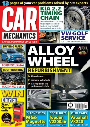 Alloy wheels can make your car look great from a distance, but up close if the rim is damaged/chipped, they can look tatty. Therefore, we follow a professional alloy wheel refurbishers to see how they make them as good as new again. Plus… our Mazda MX-5 Mk3 project car is rustproofed underneath; our project 1998 BMW 316i Compact auto receives new parts and passes its MOT test; we fit a timing chain to a Kia Sorento 2.2 diesel; show you what to look out for when buying a Ford Focus Mk4; service a Volkswagen Golf Mk7 1.6 TDI; and scrutinise diagnostically the Chinese-made MG6 1.8T.