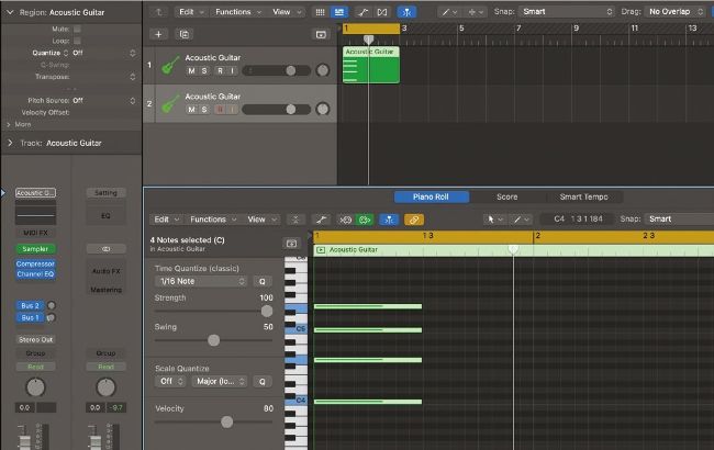 1 Basic guitar chords can translate easily to the keyboard, and if you choose one of your DAW’s stock guitar sounds – we’ve used Logic’s Acoustic Guitar, but most DAWs ship with something appropriate – you can already get a decent guitar sound. But it will be by no means perfect. Here’s show to jazz it up a bit!