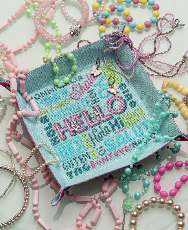 Store your trinkets in style with our handy ‘hello’ tray, complete with button corners
