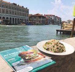 Like a lot of people, I imagine, I take my delicious.magazine on holiday to enjoy while relaxing. Recently, on a break abroad, I had the inspiration for a new feature: ‘Where has your delicious.been?’ I attach a photo of my magazine and what it inspired: we were in Venice staying in an apartment on the Grand Canal opposite the Rialto Market, where we bought all the ingredients to make this lovely asparagus, pea and pancetta risotto.