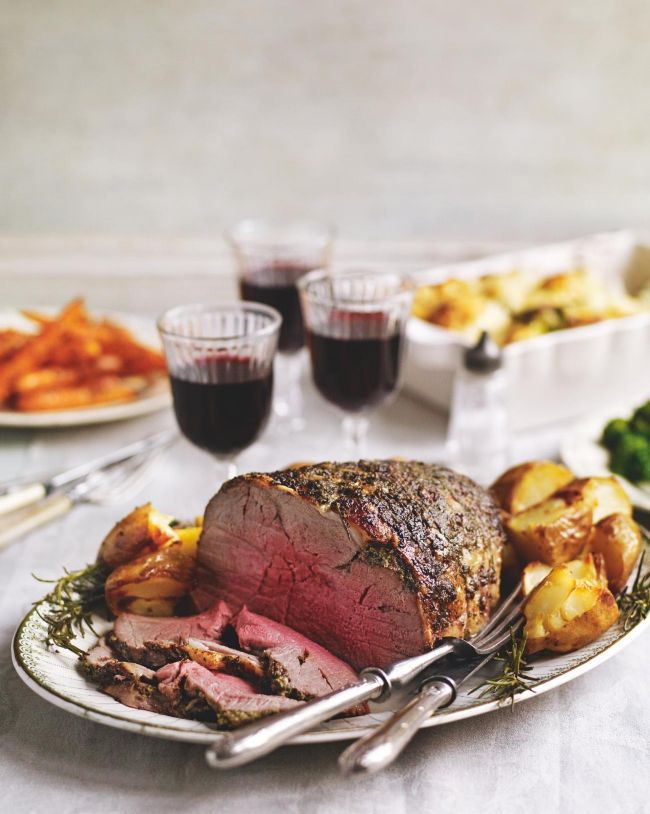 Roast leg of lamb with rosemary and garlic pesto