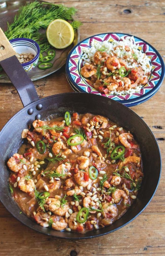 If you’re vegetarian/vegan, add roasted aubergine instead of the prawns.