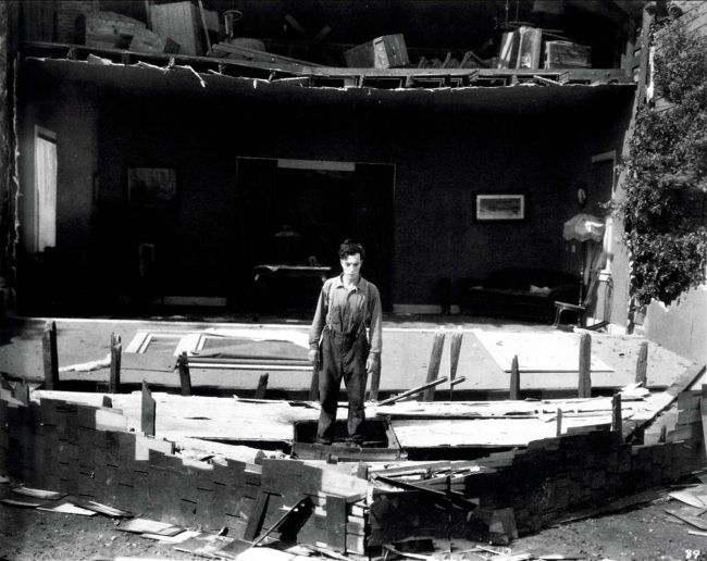 A near-broken Buster Keaton — on screen and off — surveys the damage.