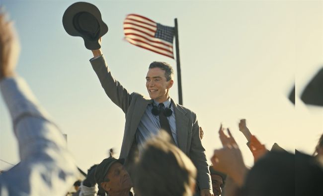 OPPENHEIMER IS NOT an easy movie. To say its subject matter and theme are inherently downbeat is something of an understatement. It flings you into a very specific, crowded world and refuses to hold your hand, with a notable absence of date or location-providing subtitles. It is three hours long, densely packed with info-rich dialogue, and mostly plays out, to paraphrase one character, in “shabby little rooms far from the limelight”. Its story unfurls along two oscillating lines — one titled “Fission”, in vivid colour; the other titled “Fusion” in high-contrast black-and-white — and cuts between their beats and revelations like an anxious channel hopper. It is, of course, a Christopher Nolan movie.