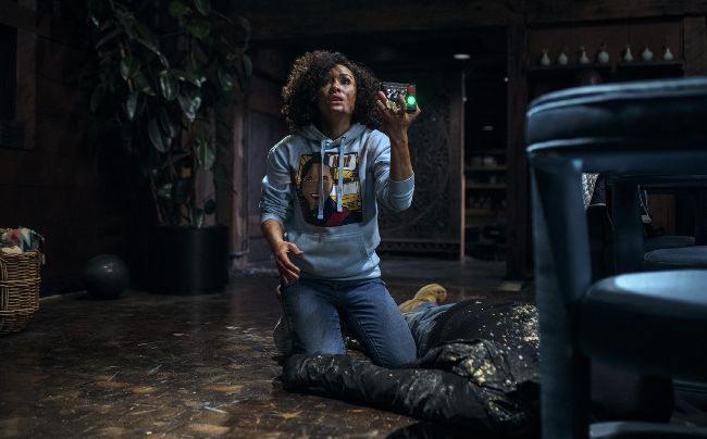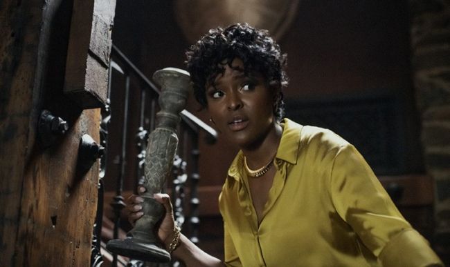 IN A NOD to both Scream and Saw, The Blackening opens with a couple (Yvonne Orji, Jay Pharoah) arriving early at the lavish cabin in the woods where their all-Black friend group is holding a ten-years-after-college get-together on Juneteenth — only to find a creepily racist talking board-game in the basement. This promises death if they can’t name a Black actor who survives a horror movie, with fatal consequences if they get Jada Pinkett Smith’s performances in Scream 2 and Demon Knight mixed up. After the prologue, a long stretch introduces characters and establishes complicated personal relationships. Observational stand-up material about Black culture plays out with the occasional masked lurker or false scare to keep the horror pot boiling.