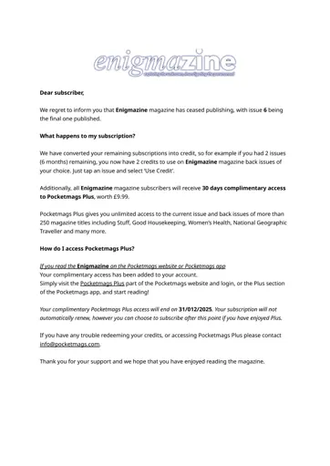 You'll receive 12 issues during a 1 year Enigmazine magazine subscription.