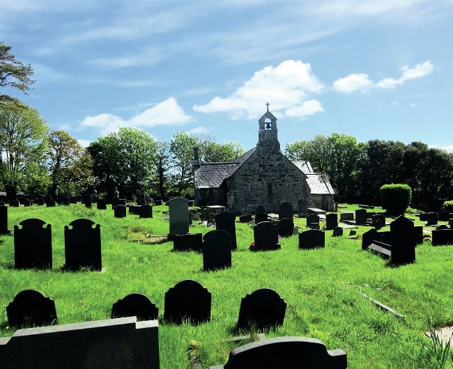 The graveyard at St Beuno’s Church, Trefdraeth, Wales