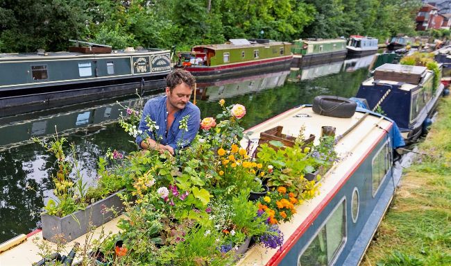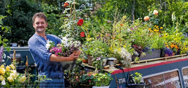Hop off the towpath onto Stuart Fenwick’s floating floristry studio and learn how to grow cut flowers in any tiny space