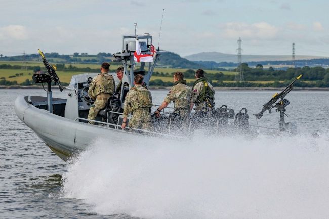 After answering a series of questions from across the Unit, 1SL was taken out on the water by 539 Raiding Sqn, in one of the Commando Raiding Craft. After a quick lesson on its capability from Mne Heather, 1SL threw the throttles into max speed and gave the boat a thorough test drive around the River Tamar. The boats returned to base with their passengers fully windswept and with smiles all round.