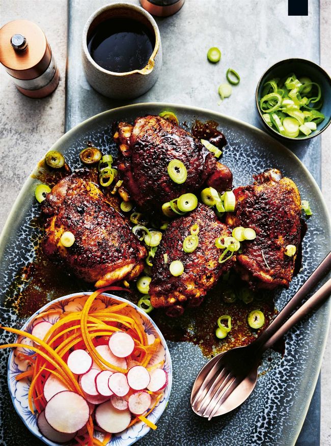 2 Return the chicken to the pot, add 2 tbsp freshly ground black pepper, the soy sauce and 125ml water, and stir to coat each piece well. Bring to the boil, then turn the heat down to medium-low, put a lid on the pot and simmer for 40 mins, turning the chicken once during cooking. Sprinkle with the chopped spring onions and serve hot with salad, noodles or rice, if you like.