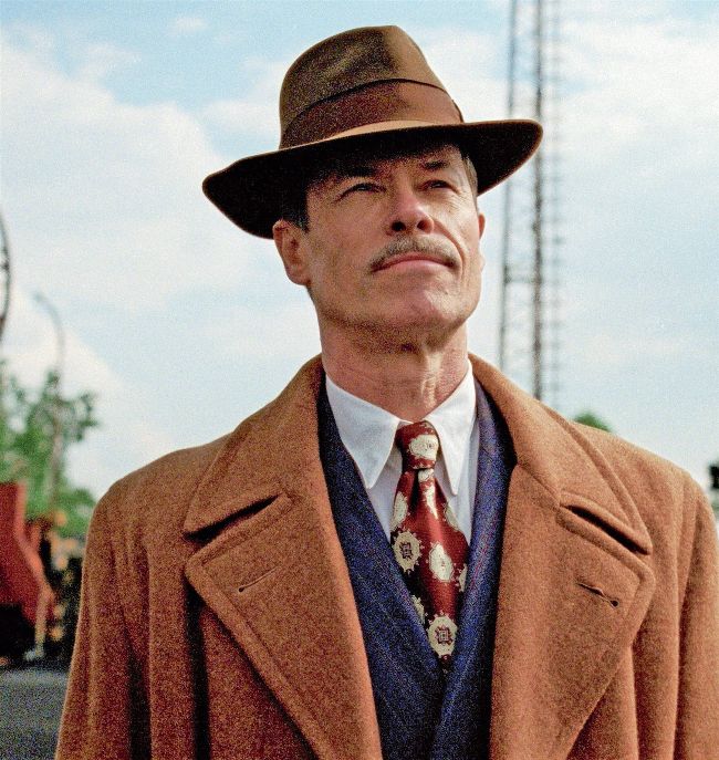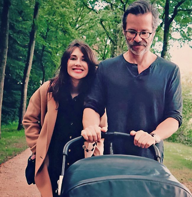 Guy (far right) plays wealthy industrialist Harrison Van Buren (above) in Oscar-tipped drama The Brutalist; and (below) with his ex-partner, Game of Thrones actress Carice van Houten. The former couple are pictured out and about with their son Monte, whom they welcomed in 2016