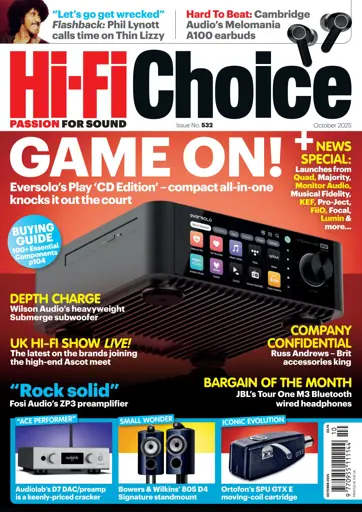 In Hi- Fi Choice this month: Bowers & Wilkins 805 D4 Signature two-way standmount loudspeaker, Eversolo Play CD Edition network music player, Cambridge Audio Melomania A100 Bluetooth earbuds, Audiolab D7 DAC/preamplifier, JBL Tour One M3 Smart Tx Bluetooth/wired headphones, Fosi Audio ZP3 preamplifier, Ortofon SPU GTX E high-output moving-coil cartridge, Wilson Audio Submerge active subwoofer
