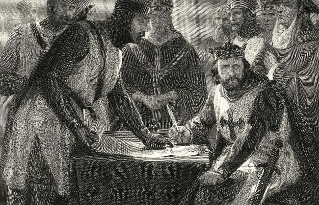 THE MAGNA CARTA KING KING JOHN DIDN’T ACTUALLY SIGN MAGNA CARTA, AS ILLUSTRATED HERE, BUT GRANTED HIS ROYAL SEAL TO IT
