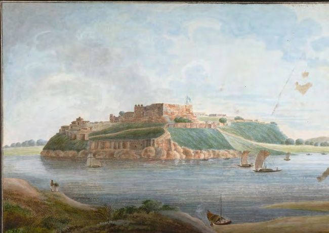 North view of the fort of Chunargarh on the Ganges, from across the river