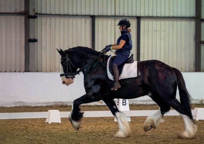 Izzy Green is a BHS Professional Accredited Coach who trains with Lee. She coaches horses and riders in all disciplines and has her own equine breeding programme. Here, she rides Roughcote Jupiter, her eight-year-old Shire gelding.