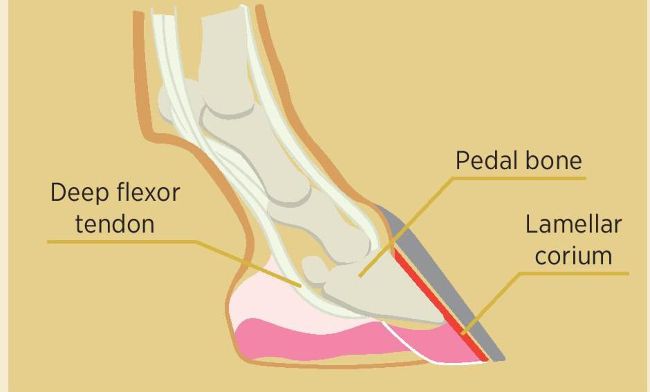 Laminitis is a serious, painful condition of the equine foot. It causes significant changes in the hoof anatomy and can be fatal. The pedal bone is suspended within the hoof capsule and is attached to laminae on the inner surface of the hoof, which hold it parallel to the wall.
