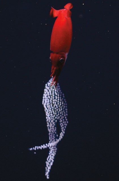 DEEP-SEA SQUID CARRIES A DAZZLING STRING OF EGGS