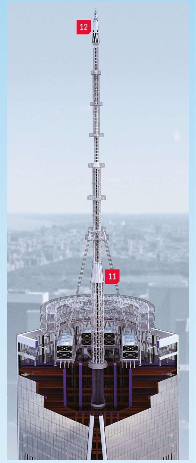 Including the base, One WTC includes nearly 38,000 cubic metres of concrete – enough to pave 200 miles of New York sidewalks.