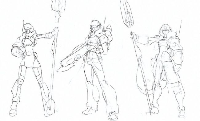 Quick sketches enable me to explore shapes, poses and silhouettes without focusing on details. I play with proportions and experiment with silhouettes to capture Nova’s features and personality. This stage helps me to narrow down the direction of the concept.