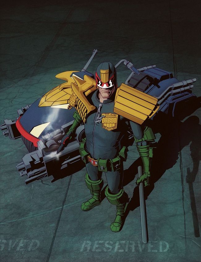 I found an old inked drawing of Judge Dredd from a while ago and decided to colour it up digitally for a pin-up or cover.
