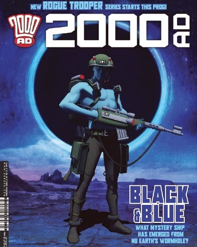 My first 2000 AD cover. It features Rogue Trooper; Dave Gibbons’ classic blue-skinned, bio-engineered clone.