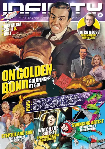 This issue of Britain's fastest=growing magazine of sci-fi, fantasy and cult TV is pure gold for Bond fans because we celebrate the 60th anniversary of the film that many feel to be the best of the series: Goldfinger. And after looking back on that 007 classic we look up, watching the skies for a Close Encounter of the Third Kind. In a packed issue we also pay tribute to David Soul and remember the rag and bone antics of Steptoe and Son. Spider-Man artist John Romita, Telstar man Joe Meek and those milk-stealing Humphreys also get a look in, so don't miss this one!
