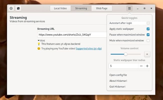 I f you’re bored of having static wallpapers on your desktop, you can use Hidamari to run videos as wallpapers. Written in Python, Hidamari can use local videos or stream them from online services such as YouTube, directly on to the desktop. And thanks to its support for GPU video decoding, you wouldn’t really notice any performance lag on modern-day hardware.