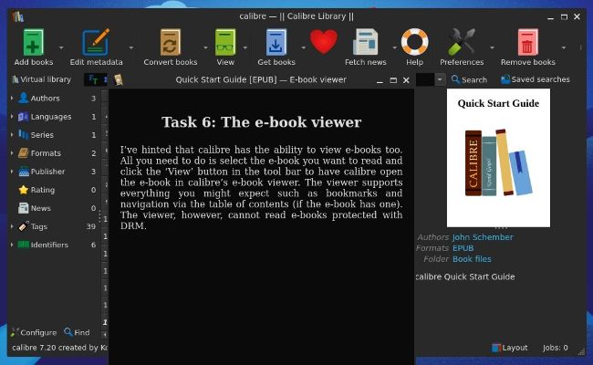 Calibre’s Get Started guide comes in the form of an ebook, appropriately.