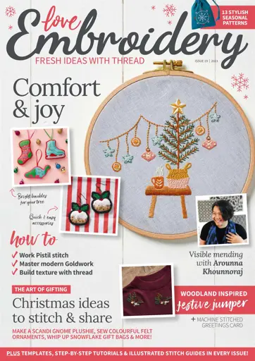 Add festive cheer to your stitching with issue 19 of Love Embroidery and have yourself a cosy little Christmas with our serene cover star hoop.