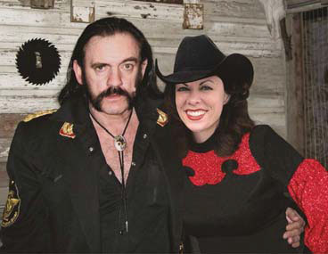 “My husband Jonny and I own Coffin Case, the guitar case company, and Jonny knew Lemmy because Motörhead were sponsored by Coffin and he had a great relationship with him and his management. I met Lemmy through Coffin, and I was in a roots duo called the Lonesome Spurs with Danny B. Harvey, the guitarist who played with him in Headcat. I knew Slim Jim Phantom too, the drummer. I’d be at a lot of the Headcat shows and I was the little Angie Dickinson to their Rat Pack, I guess. In 2006, Lemmy came to one of our shows and was very impressed. I was playing guitar, singing and playing a suitcase kick drum, and he told me ‘You keep good time!’”