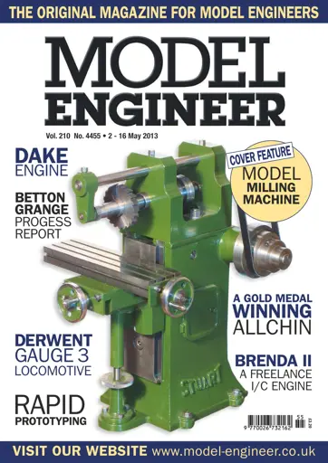 Vol. 210 No. 4455 COVER FEATURE, MODEL MILLING MACHINE. DAKE ENGINE. BETTON GRANG, PROGESS REPORT. DERWENT GAUGE 3 LOCOMOTIVE. RAPID PROTOTYPING. A GOLD MEDAL WINNING ALLCHIN. BRENDA II A FREELANCE I/C ENGINE.