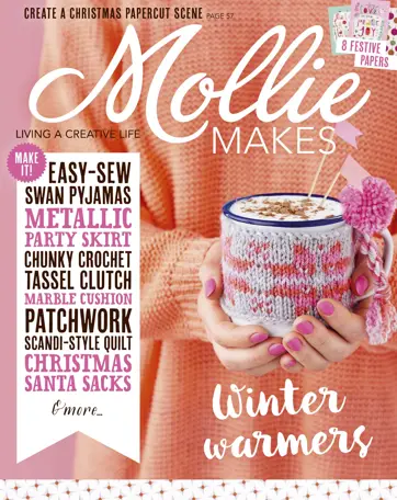 Look forward to the new season with a selection of winter warmers, including Scandi-style mug cosies and a contemporary patchwork quilt. Plus, you'll find an on-trend metallic skirt and chunky crochet clutch (perfect for parties) plus easy-sew swan pyjamas (for nights in!).